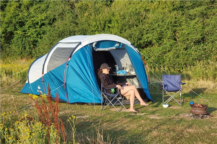 With the tent set up we could make it a little more homely. The living space has enough some of a decent-sized table that we could lay out food on (as well as a little Campingaz stove), a couple of camping chairs and luggage. The decent ceiling height of the Arpenaz 4.1 Fresh & Black meant we weren't hunched over either.