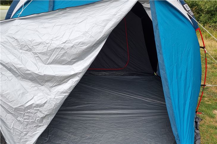 As it was just two off us, there was ample space in the bedroom for a double blow-up mattress. It is sold as a four person tent though and designed to accommodate up to four 600mm-wide mattresses. It would be pretty cosy with this kind of arrangement, but if you were a young family of four it'd certainly do the job for a couple of nights.