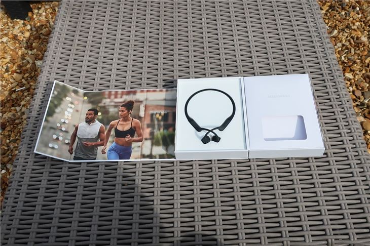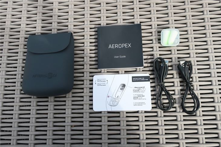 The Aeropex come in a smart, white box that includes a carrying case of accessories (two chargers and some earplugs). That's right, you get foam earplugs to block out external noise. This arguably defeats the point of not using headphones that block out external surroundings, so we opted not to use them much - but they are easier to put in and take out than in-ear headphones when we're crossing the road and want to listen for cars.