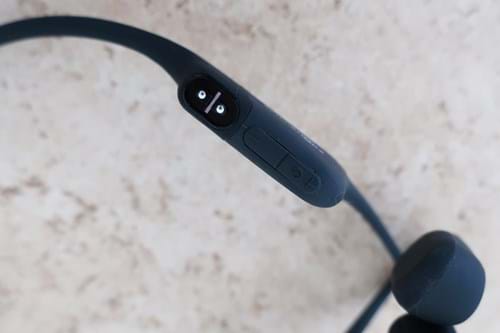 The headphones offer an eight-hour battery life from a full charge, which takes about two hours, and they can last 10 days in standby. A few small buttons on the right-hand side of the headphones control Bluetooth (which is very easy to pair), volume and power. On the left conduction pad, a multifunction button that we didn't see at first controls playing and pausing music, podcasts etc as well as using your phone's voice assistant and answering calls.