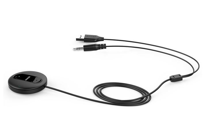 When it’s paired it can be used to play audio through the aux socket of a car. The little round control module can be stuck in a convenient place, even if the surface is textured. The controller has play/pause and track skip functions, so you can easily control music being streamed from your phone.