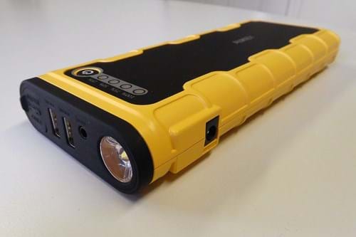 The level of charge is indicated on blue LED lights on the unit and, with 18,000 mAh of capacity, it’s strong enough to charge an iPhone from empty 18 times – and it will. There is a twin USB connector for plugging in phones. But really, it’s meant for jump starting a car.