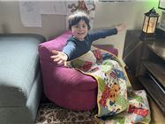 If you have a little one (or not so little one at this age perhaps) who wants their own seat then this is perfect. As a parent you'll appreciate the fact that it's light, easy to move around and doesn't take up much space. You children will love the fact it's comfy, cosy and they can really snuggle down into it. Plus of course, they have their own chair. Our chief tester, Reuben loves it (as you can see below) and much prefers it to sitting on the sofa while his older brother and sister have already requested their own ones.