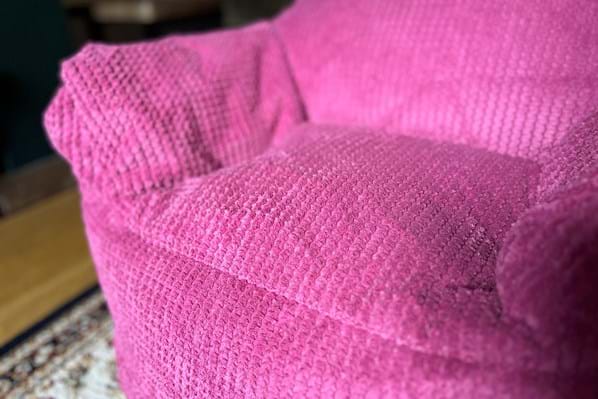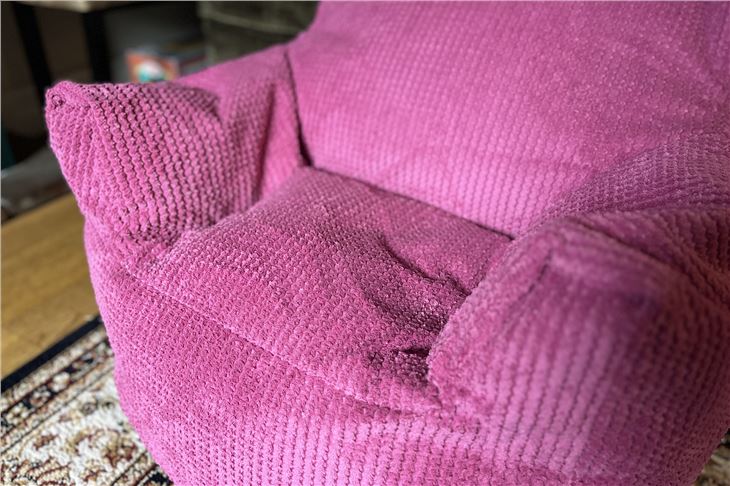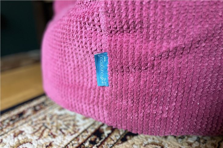 The Children's Armchair bean bag is available in various colours including the pink we're testing here and there are two finishes, either cord or the pom pom we've gone for. It measures 50cm by 50cm and comes with SupremeX polystyrene filling and a child safety zip to stop little hands getting to the filling. It also has a stain resistant finish and is fire retardant plus there's a two year guarantee.