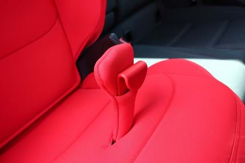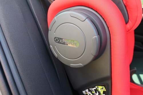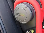 It also has what Britax calls SICT - a side impact protection system. This is a plastic dial that unscrews from the side of the seat and is designed to reduce impact forces by minimising the distance between the car and the car seat. It deforms to absorb the energy before it reaches your little one. Practical features include a removable and machine washable cover and there are 12 different colours, the Fire Red we're testing here being the brightest.
