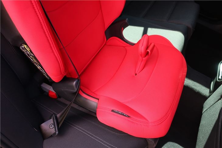 As well as the standard Isofix mounts you'd expect, the Kidfix III M comes with 'SecureGuard', basically a central strap with a clip that creates a fourth point for the seatbelt. According to Britax Römer, by keeping the lap belt in an optimal position over your child’s pelvic bones helps reduce abdominal forces in the event of a frontal collision by up to 35 per cent.