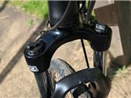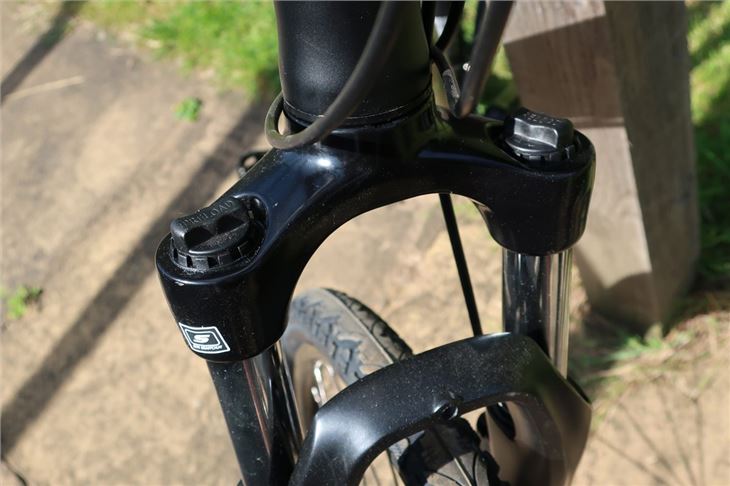 The Carrera Crossfire 2 is comfortable to ride on varying surfaces thanks to the Suntour NVX front suspension forks, offering 75mm of travel to easily handle off-road terrains like hills, stones and tree roots. There's also a pre-load adjuster, which lets you adjust the stiffness of the forks, but it can still sometimes feel a bit too bouncy when coming off kerbs and the like.