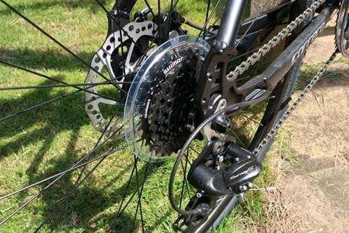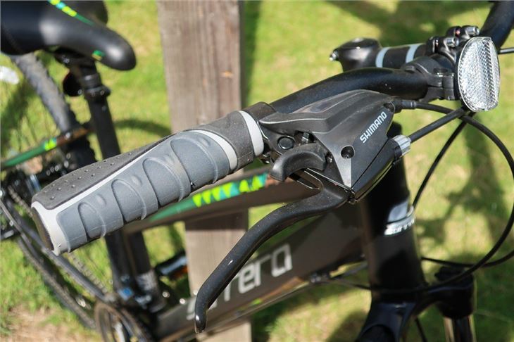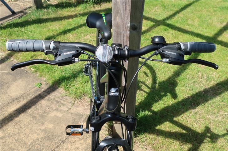 Climbing inclines and building up speed on flat ground feels easy while gear changes are usually smooth thanks to the 8-speed Shimano Tourney TX800 componentry with 24 gears (three speeds on the left shifter, eight on the right). Yet, every now and again the gears don't change after we shift. It's something that might be fixed by some minor adjustment, but that's the price you pay for buying a budget bike. Our feet have also slipped off the pedals when this has happened, which can be a painful experience if you catch your leg on a sharp part of the pedal.