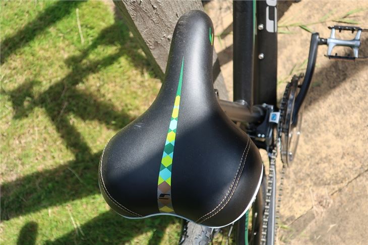 The 700c Kenda tyres offer extra grip on a wide range of surfaces, sitting on 32 spoke double-wall rims. However, we'd prefer chunkier tyres and wouldn't be at all surprised if we got a puncture from riding on a cobblestone road near our house. Mudguards that fit this bike can be added with a Halford's mudguard set for an extra £17, but it's a cheap enough addition that we don't really understand why they aren't included in the setup anyway.