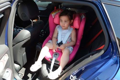 When it comes to rear facing, the advice from experts is to keep children facing backwards until they are four years old. Why? Well it's been proven to be five times safer for younger children in the event of an accident due to the way their head moves in an impact. The issue for us here is space. Eden struggles to get her legs in facing rearward and then spends the journey whinging.