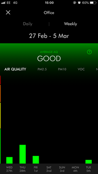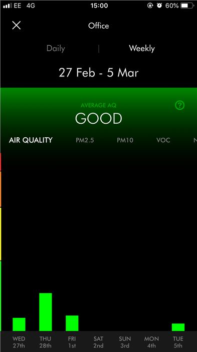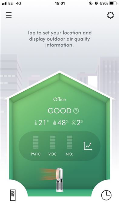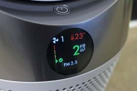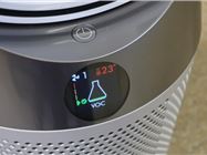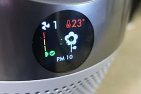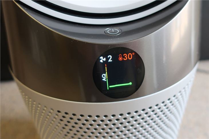 A small, circular, LCD display on the body of the Pure hot+cool also give us very helpful insights into factors that affect our air quality in the office, including information about humidity, particulate matter (PM), Nitrogen Oxide (NO2) and Volatile Organic Compounds (VOCs) - which can lead to a whole host of health problems. You can use the remote control to cycle through the different displays.