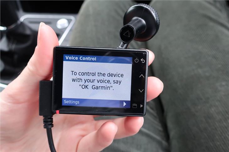 The device can be voice-controlled saying, "Okay Garmin". This lets the device know you're about to give it a command, and then you can tell it to save videos or pictures, turn audio on or off, turn on Travelapse etc. This system works well, albeit for limited commands, but if you have the radio on the dash cam sometimes thinks it's heard an instruction and will mistakenly carry out said command - like recording your journey in Travelapse mode.