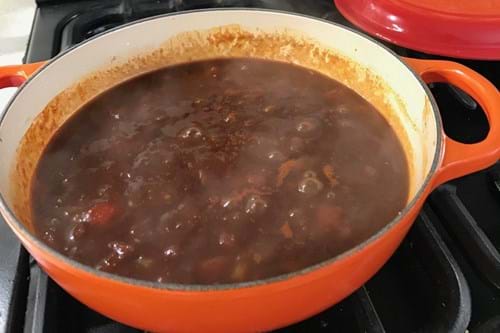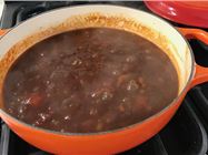Next up is the BBQ sauce. This was super simple, we just soften the onions in a pan, then add all the ingredients in and simmer for 30 mins — as the recipe says. Once cooled, we blitzed it with a stick blender and put a sterilised jar, the recipe made about 500ml of BBQ sauce.