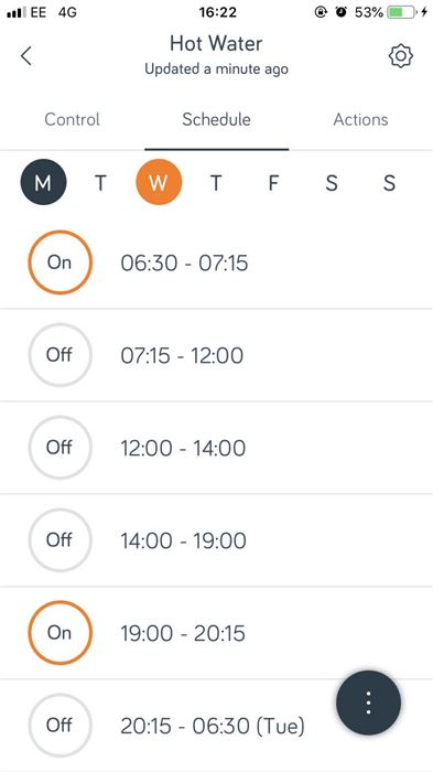 Although, it is easier to use the app than the actual Hive thermostat. In fact, that's kind of the point. Scheduling is customisable so you can set different times for the heating or hot water to come on at different times. Or, for example, you can stop the heating coming on from your phone if you make last minute plans and don't want to pay to heat an empty house.