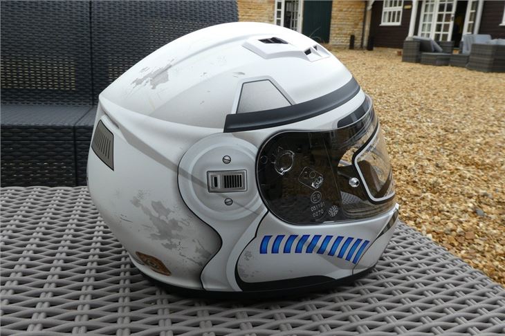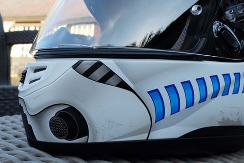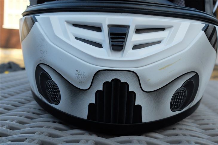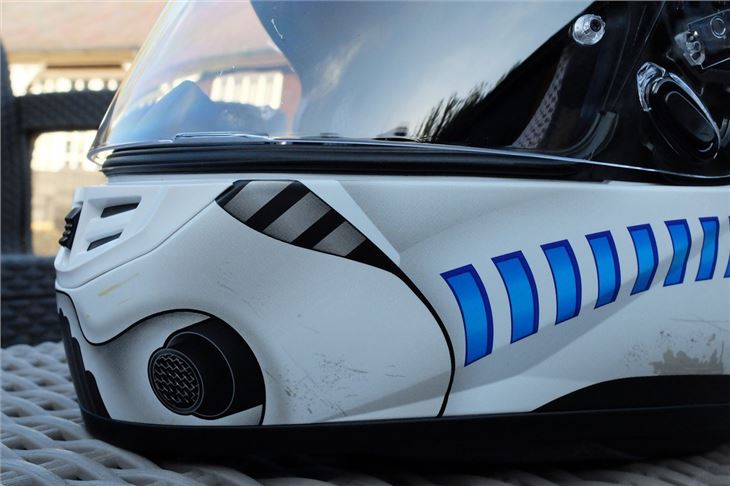 The Stormtrooper design replicates the well-known white combat helmet with blue air-supply hose-inspired stripes and added distressed markings. Currently priced around £145 on Amazon, we think it's a steal if you're a Star Wars fan who also happens to be in the market for an entry-level motorcycle helmet.