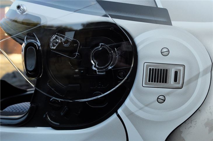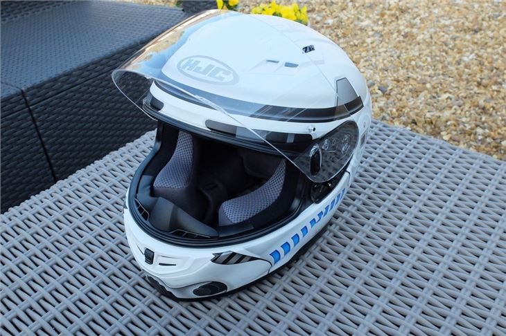 The visor is anti-fog and scratch-resistant, providing 95 per cent UV protection and is Pinlock ready. It's secured with HJC's RapidFire Replacement System, which means the visor can be removed and replaced quickly and without the need for any tools.