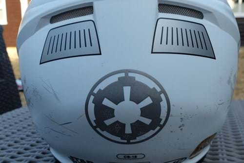 The helmet itself has a polycarbonate shell, and the moisture-wicking Nylex interior pads are removable and washable. It also features an Advanced Channeling Ventilation System (ACS) — closeable forehead and chin vents, plus two rear mesh exhaust vents — so your head won't get too toasty when you're out there policing the Galactic Empire.
