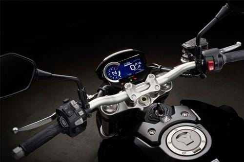 No matter, the riding position is forget-about-it natural, so you simply get on with firing up the ignition. This brings that LCD screen to life, which shows all of the vital information clearly and without some of the flashy histrionics of others in this corner of the market. Curiously, starting is done by a key being twisted in the ignition barrel rather than a keyless system as you might expect on a bike of this price and pitch. However, it works, so don’t knock it.