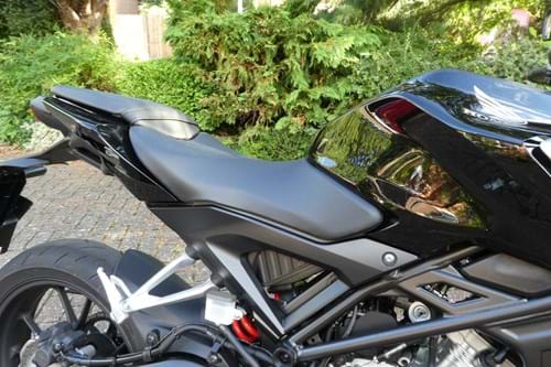 The riding position is neutral (if not mildly aggressive), meaning that it's fairly comfortable to ride and won't put too much pressure on your back or knees. It's one of the easiest 125s to get to grips with in our experience as well. The learning curve for new riders will be minimal because it's so easy to just get on the CB125R and ride without any gripes.