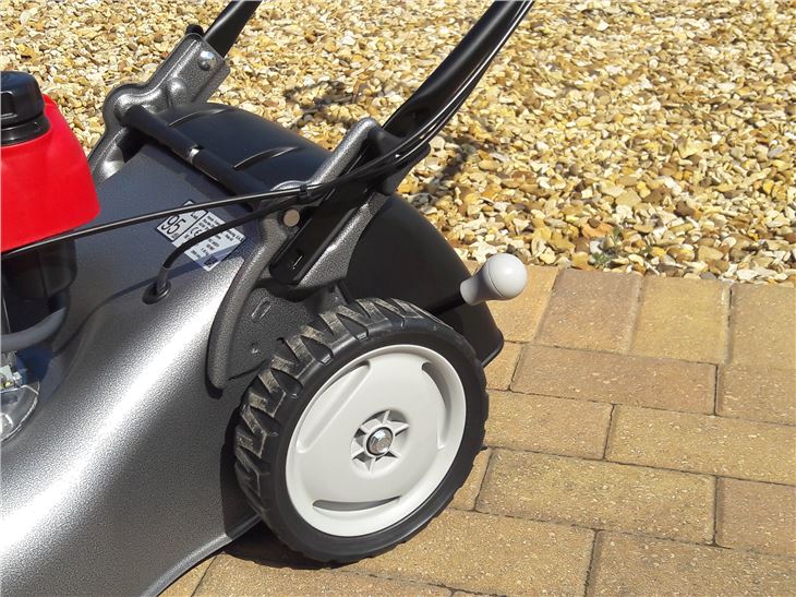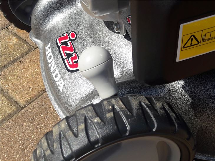 There’s a range of adjustments and front and back can be adjusted independently of each other. If you’ve let the grass go a bit, then the height can be raised on the Izy between 74mm. Likewise, if you’re looking for a close cut, it can be lowered down to 22mm.