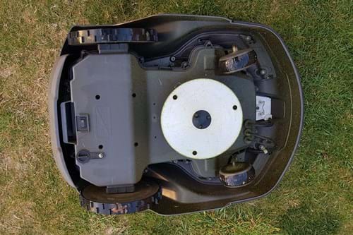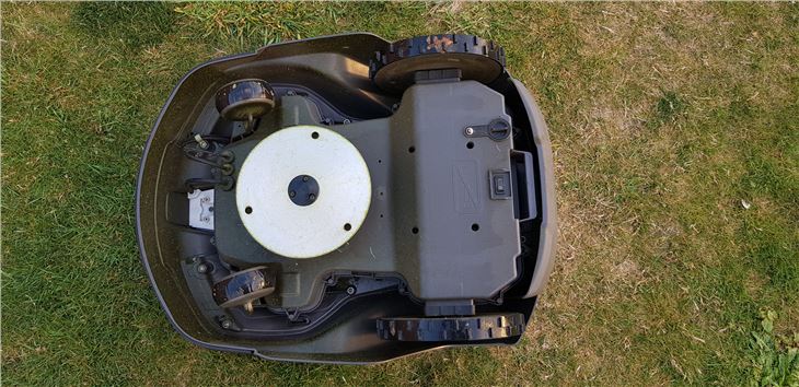 Flip the Automower onto its back and you’ll find a disk with three pivoting stainless steel razor blades - this is what does the mowing, shaving a small amount off the top of the grass regularly. It means the lawn always has that “just mown” look and never looks as though the grass has become overgrown.