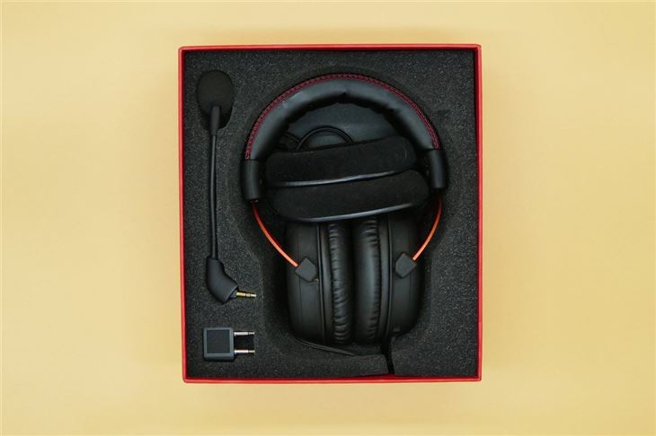 Opening the box, the first thing we notice is how nicely the Cloud II is packaged considering the £80 price tag (£75 for the gunmetal instead of red). Inside the box, you get a carry case, airline adapter, a USB soundcard and spare fabric ear cushions. The carry case is a flimsy mesh bag, but the extras are a surprising bonus for this price.