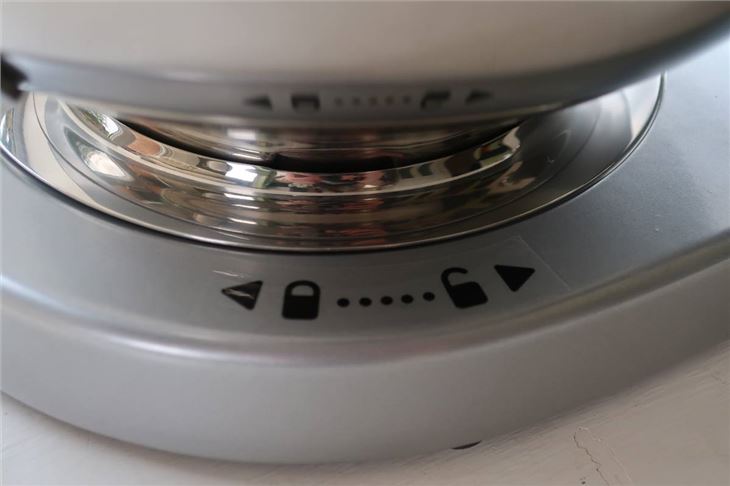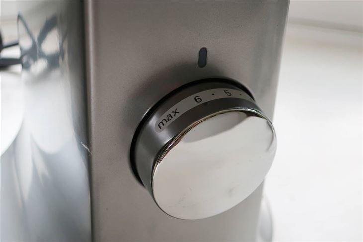 Overall, the simplicity of the design is one of our favourite things about the kMix Chrome. There's one dial for speed settings and one lever on the upper right side for lifting the mixer head upwards at an angle, while the bowl simply attaches with arrows showing which way to turn it to lock it into place. Similarly, the attachments lock in and out of place with a simple turn.