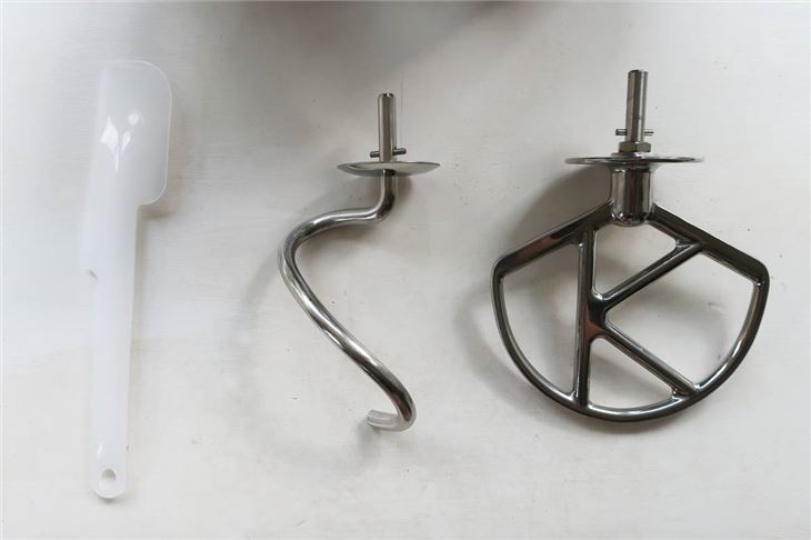The beater, called the K beater (with a notable K shape incorporated in the design), balloon whisk and dough hook are all stainless steel and feel durable. We found the K beater particularly useful considering we bake cakes more than anything else, although you'll need to find somewhere to store the fairly large accessories, they didn't fit in our utensils drawer.