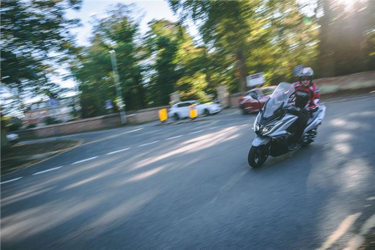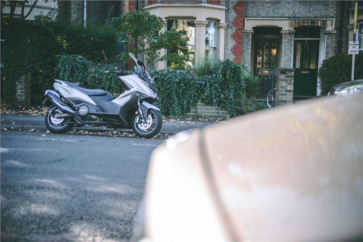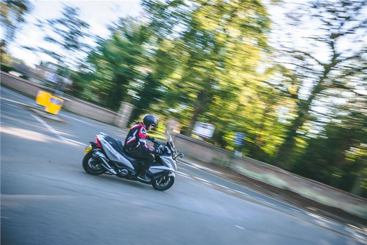 With 54PS on tap, the AK’s engine means this scooter is only for full licence holders so expectations are high for its performance. Off the mark, there can be a slight delay from twisting the throttle to the bike responding, but we soon got used to this and the Kymco is far from the only scooter to have this momentary interruption in service. Once moving, acceleration is more than brisk enough to see off cars from the traffic lights and keep the AK up alongside most motorcycles. The throttle action on the move is smooth and motorways are easily dealt with. Top speed is 115mph, though the AK550 would rather you stuck to speeds lower than that as the last few ticks of the speedo’s counter take a while to come.