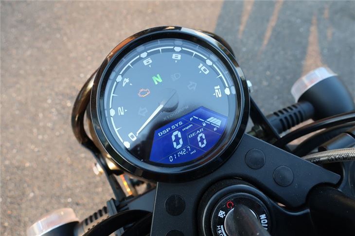 The Lexmoto is pretty scarce when it comes to equipment, too. You get the basics, including an analogue rev counter that features a small digital section with speedometer, fuel gauge, mileometer. It's easy enough to read on the go and there's a USB point by the headlight for recharging devices as well.