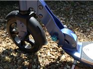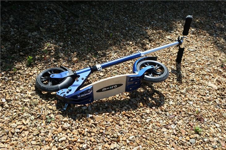As soon as we get the Micro Flex Deluxe out of the box, we can tell it's premium quality. The wheels are large and solid to handle bumps smoothly and make slightly longer distance commutes easier. The Flex Deluxe also features a large metal, foot-operated brake and plastic mud-guards. The wood and fibreglass deck isn't reinforced by metal - like it is on the Micro Suspension scooter. Instead, the deck is 'ultra flexible', according to Micro, so it can absorb bumps and deliver a comfortable ride.