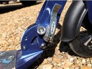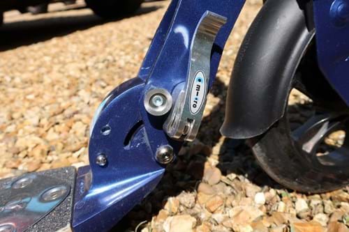 Folding the scooter down is a fairly simple job, it's just a case of undoing a latch and pressing two buttons on either side of the folding block, which is just the mechanism that moves between the handlebars and the deck. The scooter clicks into place when folded or unfolded, then you tighten the latch again. It's a bit confusing at first, and if you do it too quickly, it feels like the mechanism might take your fingers off. But this instruction video clears it up a bit, as well as explaining how to adjust the handlebar height.