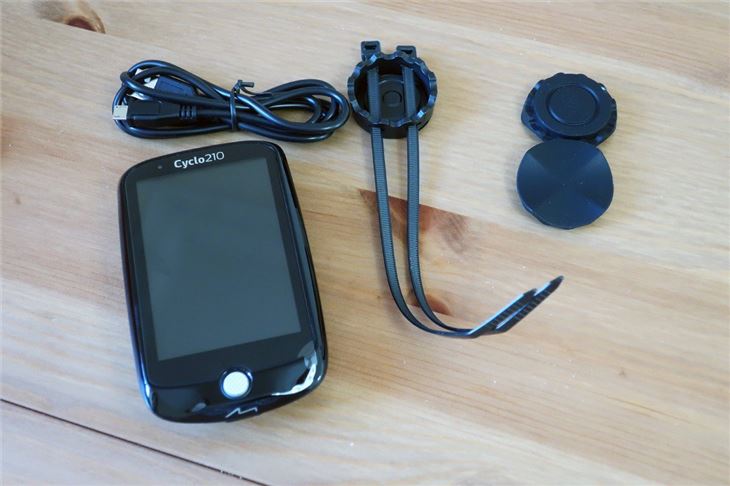 First impressions are excellent. As bike computers go, the Mio Cyclo 210 is an attractive piece of kit, and it’s easy to set up. In the box is the unit itself as well as a USB cable and a bike mount kit, essentially comprised of some cable ties and a few rubber bungs (or ‘stem mounts’ to use the technical term).
