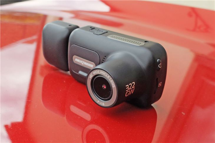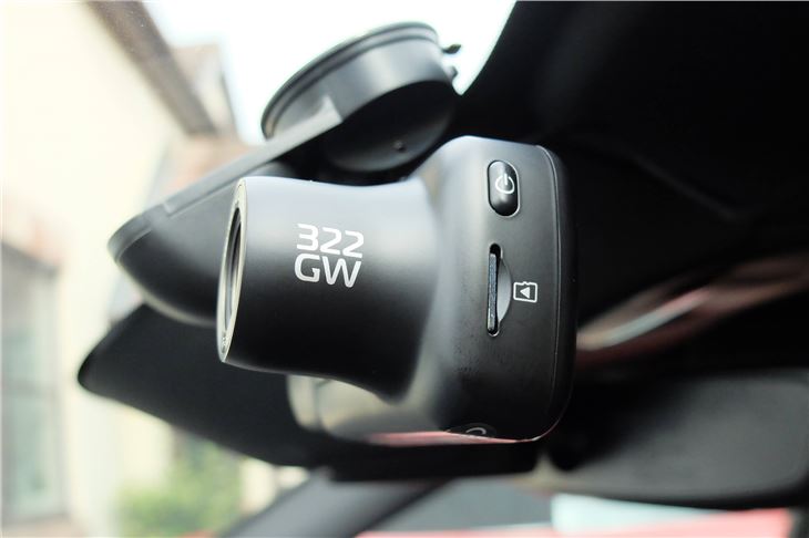 We're testing the Nextbase 322GW with the Rear View Camera module which costs £59. It's a clever little camera which slots in the side of the main dash cam and an alternative to having a second camera fitted to the rear window, plus all the ensuing cables. You can adjust the angle of the camera and it shows the display in a little box on the touchscreen, so you can make sure you're not simply filming the rooflining. Alternatively you can use live view on the Nextbase app.