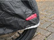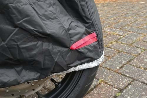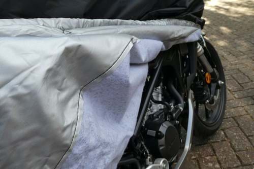 My bike is almost completely covered, as you can see from the photos, it's just the bottom of the wheels that aren't. The outer material is very tough and well-ventilated to reduce condensation, while the interior is composed of a soft heat-resistant lining that protects against scratches. The interior also helps stop condensation forming so moisture doesn't sit between your motorbike and the cover, leading to paint chafing.