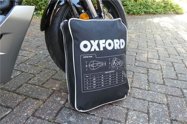 There are loops for chain locks through the front and rear wheels too, which come in very handy. The inner lining is also heat resistant in case it touches a hot exhaust, though Oxford says this is for 'momentary contact'.