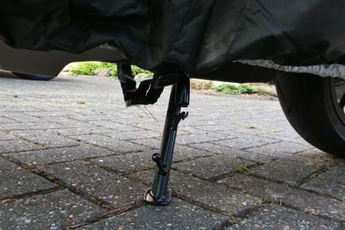 It's easy to fit with an elasticated base and adjustable belly strap to hold it in place on your motorcycle. We store our CB125R next to our house so it's protected from the wind mostly, but if you store your bike or scooter anywhere out in the open, you'll need to ensure the cover fits fairly tight to make sure a gust of wind doesn't blow one side up and leave your bike open to the elements.