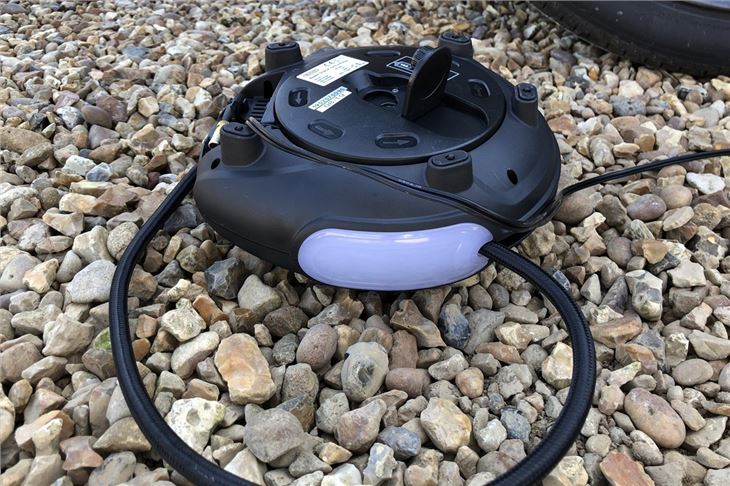 There’s a useful light on the unit to help you see what you’re doing if you’re inflating a tyre at night (although it doesn’t have a setting to flash in order to warn motorists of a potential hazard) and it’s not just cars it works on; the unit comes with extra attachments so you can use it on bike tyres, footballs, air beds and the like. It’s also chunky and sturdy enough to withstand being dropped (although perhaps not run over).