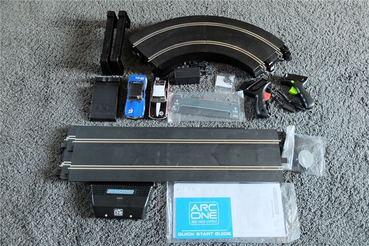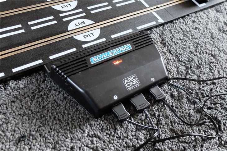 There are nine different tracks you can construct from this set, giving you plenty of variety and play life. We used a standard figure of 8 (ish) complete with a bridge in the middle. There's the main ARC One powerbase, which you simply slot in the power cable along with the two controllers. From start to finish, setting up takes all of 10 minutes.