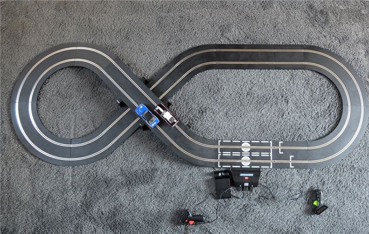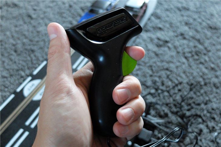 And talking of speed, Scalextric still has that. You can alter the power of the controllers using a little dial, but even on the minimum, they're very fast. Quick enough to easily fly off corners anyway. It means the days of just holding down the trigger on the controller and letting your car whizz around continually are long gone. There's a real skill involved, especially if you turn the speed control dials up to the max.