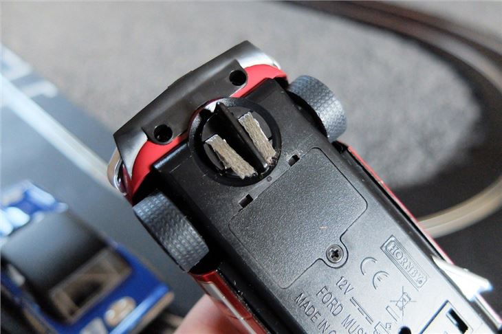 Modern Scalextric cars are lighter than before, which means better performance. But to help keep them on the track, there's a magnetic system called Magnatraction by Scalextric. It essentially keeps the rear of the car stuck to the road so you can take corners faster.