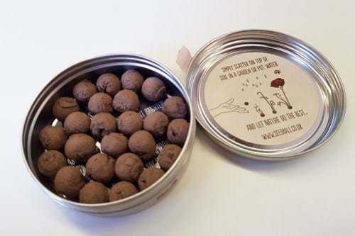 Each tin contains around 20 one-centimetre balls made of clay, up to 100 seeds, peat-free compost and a pinch of chilli powder to ward off pests. The idea is that each seed ball has everything it needs to get started and you don’t need any gardening expertise to get good results. The seeds, as well as the tins, are also made in the UK.