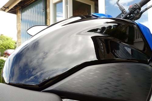 We decided to first test Waterless Wash and Wax on a motorcycle, since in a small area you’ll find dead flies, grease and brake dust to clear away. If the product can cope with that, it can cope with the panels on a typical car. The directions are to spray the product onto a microfibre cloth rather than the panel itself.