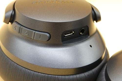 The ANC button is located on the underside of the left earcup, along with the power button. Anker says you'll get over 30 hours of listening with the Life 2 when using Bluetooth and ANC. Plugged in rather than wireless, the headphones playtime extends to 60 hours. Plugged in and not using ANC, the Life 2 have unlimited battery life.