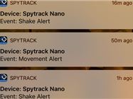 The iPhone screen grab below is what happens when the tracker is in a rucksack, and shake alerts are on...