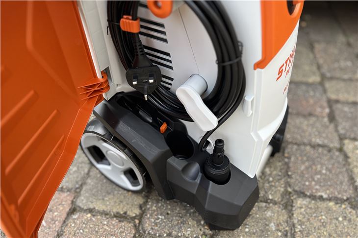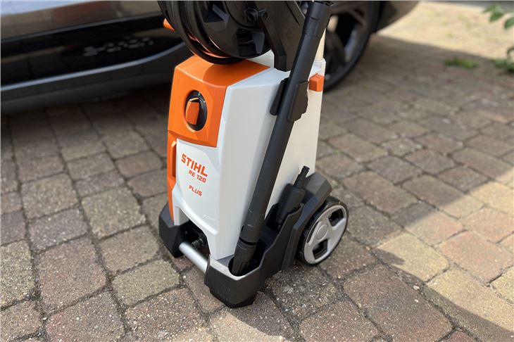 Like all Stihl products, the RE 120 Plus feels high quality and made to last. At more than 20kg, it's hardly light, as you'd expect, but the sturdy telescopic handle makes it easy to manouevre in the right place. Setting it up is easy too, the power lead is neatly stored in a side compartment (where you can also keep the spare nozzle) while the lance simply clicks into the quick release hose fitting. Connect your hose and you're ready to go.