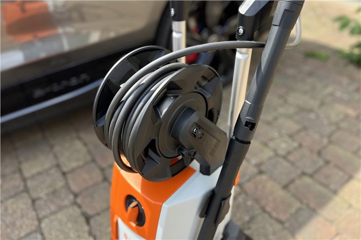 The long hose is really useful as you don't have to keep moving the unit around the car as much while the storage reel means the hose is less likely to get caught on wheels or tripped over. We also liked the fact you can easily store the lance on one side.
