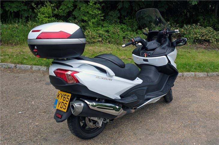 Folding the mirrors might make the Burgman narrower, but even so it’s still a big, bulky machine – particularly for riders more accustomed to lower capacity bikes and scooters. Gaps that can be exploited on smaller machines will be too narrow for the Burgman to squeeze through, so if you’re used to filtering in Central London jams some extra caution is needed - at least until you're familiar with the bike's width.