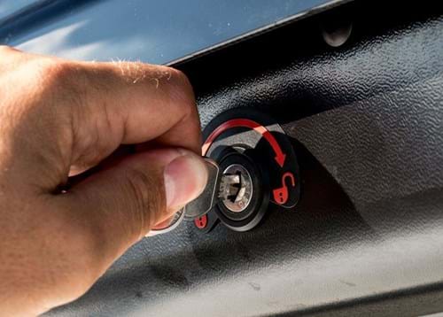 The box opens on just one side - which means you have be careful where you park to access the box - but the locking system is simple and only locks once everything has been packed away flat. This prevents misloading and provides peace of mind that the box won't spring open mid-way down the road.
