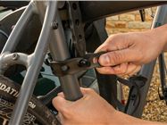 Then it's simply a case of lifting your bike up onto the carrier and strapping it down. The RaceWay is only suitable for standard frame bikes, but you can get a bike frame adaptor as an extra. Securing them is done by two rubber straps around the crossbar and a third on the seat tube. They don't look like much, but they provide a really secure anchor. The cradles themselves have a foam core designed to minimise vibration and stop the bike bouncing.